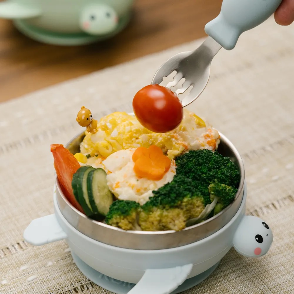 【DOZO嚴選】KOM-海洋歷險趣 不鏽鋼兒童矽膠學習餐具 海龜 (贈飛魚叉匙組)_藍色x1入