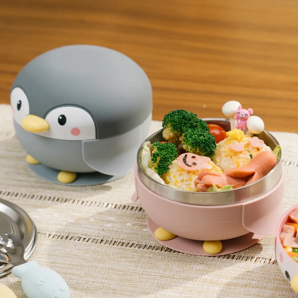 【DOZO嚴選】KOM-海洋歷險趣 不鏽鋼兒童矽膠學習餐具 企鵝 (贈飛魚叉匙組)_灰色x1入