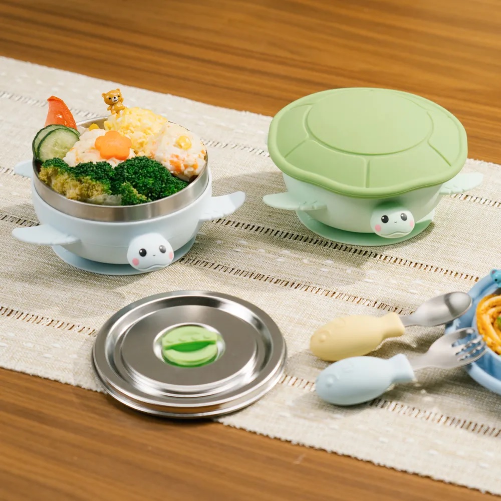 【DOZO嚴選】KOM-海洋歷險趣 不鏽鋼兒童矽膠學習餐具 海龜 (贈飛魚叉匙組)_綠色x1入