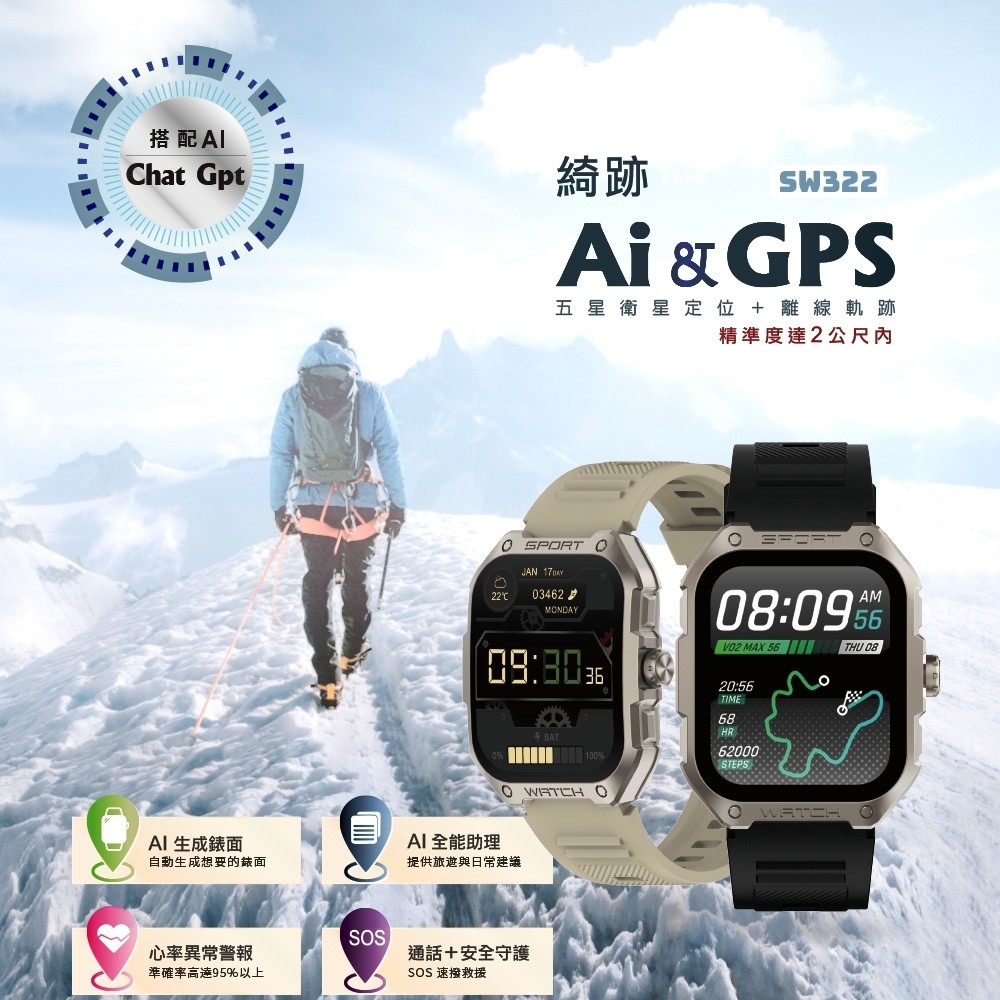 ERGOLINK 人因 SW322 綺跡 Ai GPS 智慧通話腕錶-銀河黑