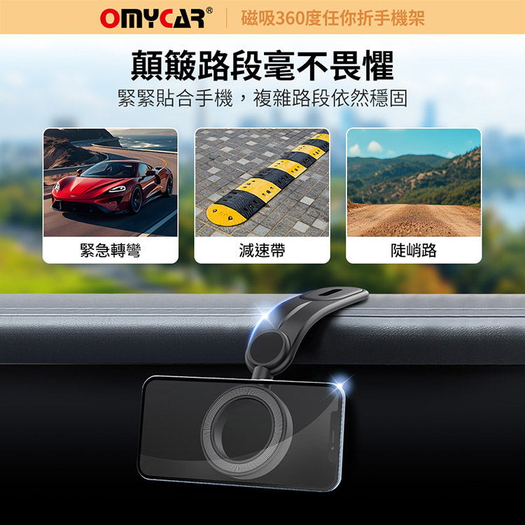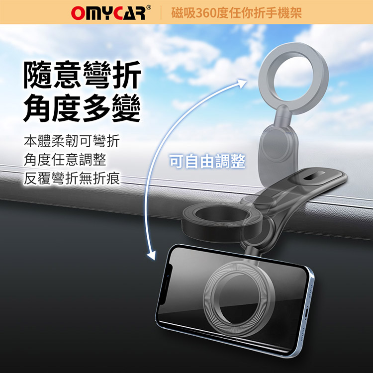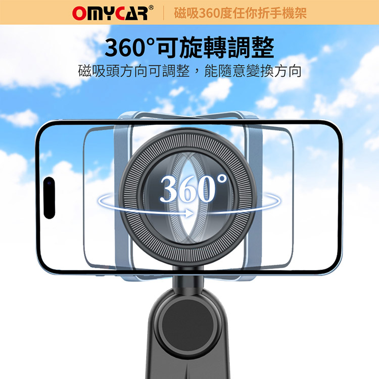 【OMyCar】磁吸360度任你折手機架 (多角度旋轉 免充電 桌面追劇支架 車用導航手機架 辦公室手機座)