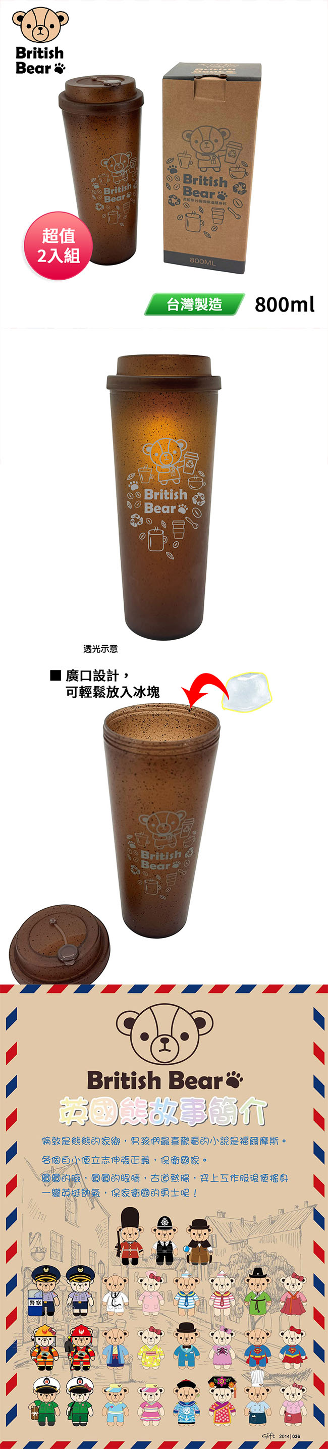 英國熊 台製咖啡渣隨身杯800ml BC-079B 超值2入組