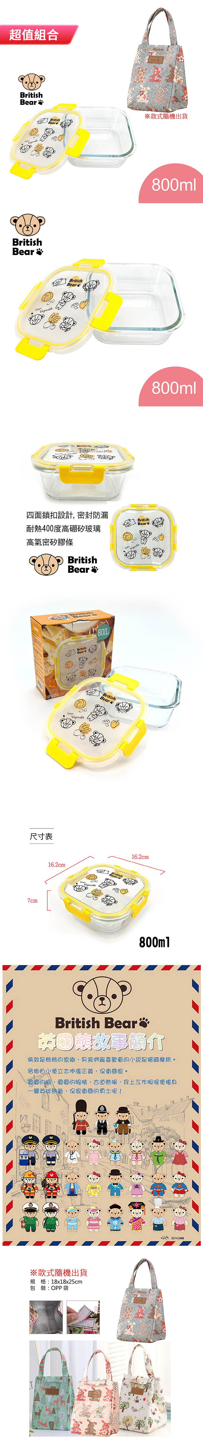英國熊 耐熱玻璃保鮮盒800ml UP-E055+牛津布保溫提袋(款式隨機) EG84