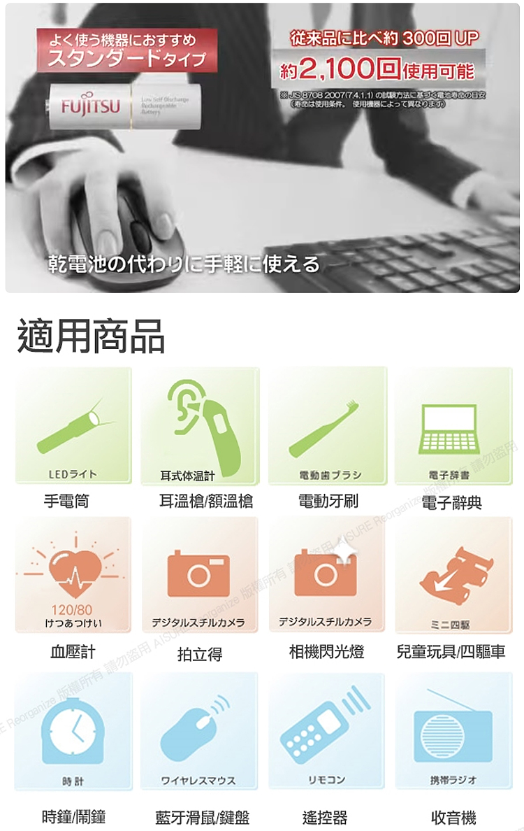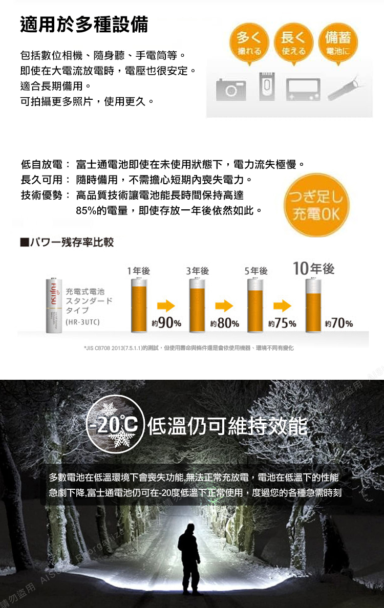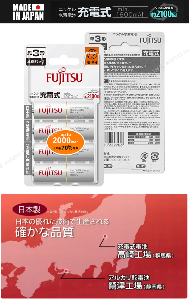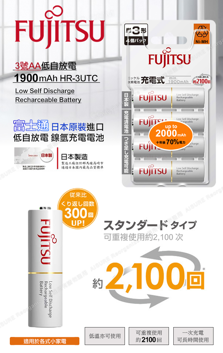 日本製 Fujitsu富士通 3號AA低自放電1900mAh充電電池HR-3UTC (3號12入)
