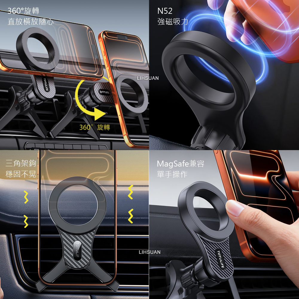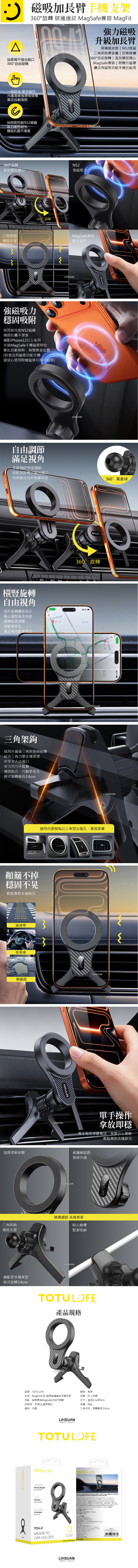 TOTU台灣官方 碳纖維紋磁吸出風口導航手機支架 加長臂 三角鉤 MagSafe兼容 MagFit系列