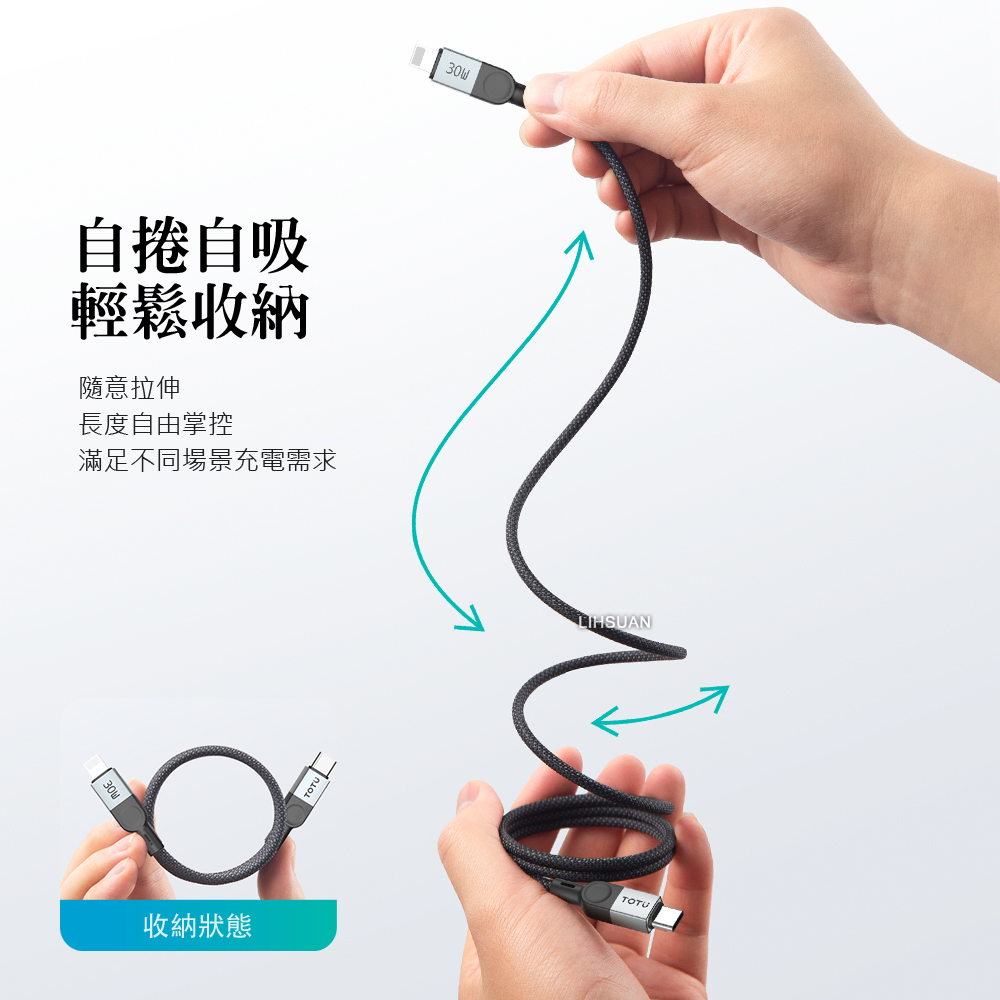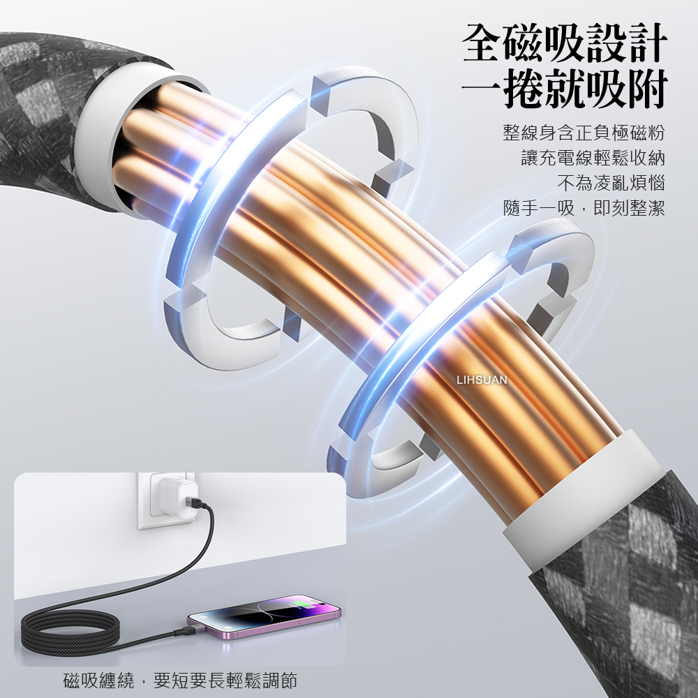 整線身含正負極磁粉,讓充電線輕鬆收納