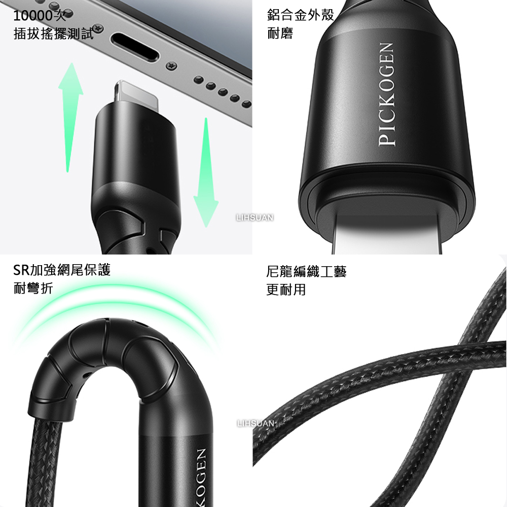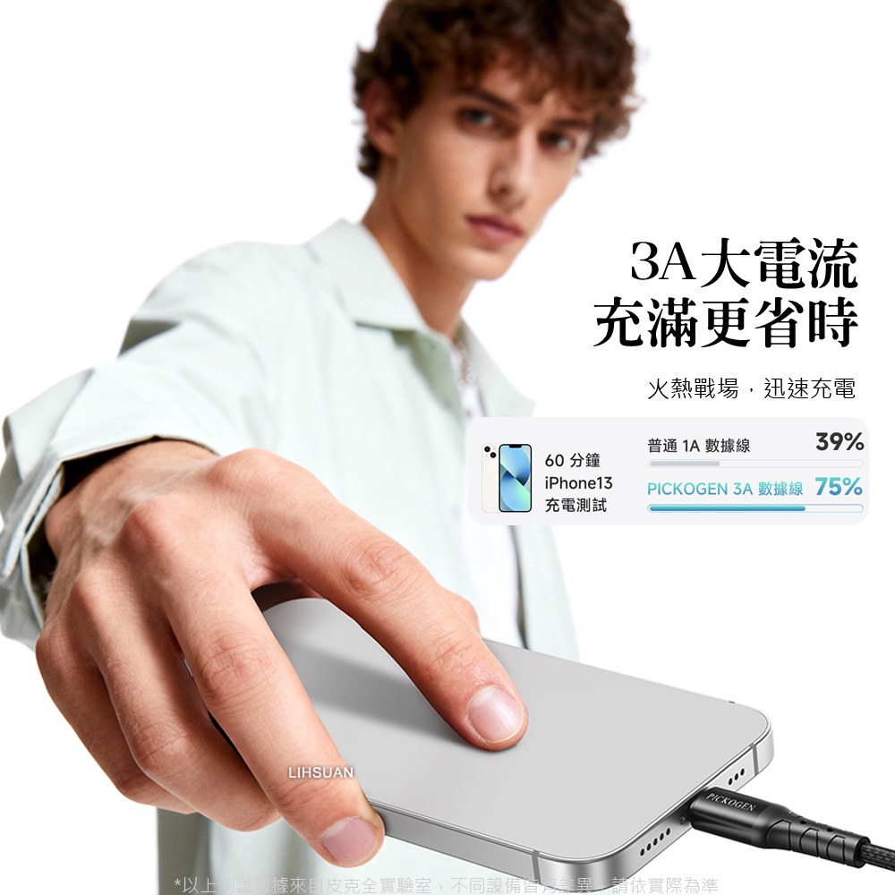 PICKOGEN 皮克全 Lightning/iPhone充電線傳輸線編織線 3A快充 FastFlex 1M
