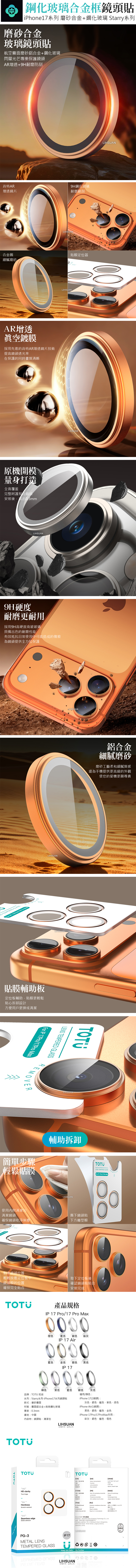 TOTU台灣官方 iPhone Air 磨砂鋁合金鋼化玻璃鏡頭保護貼膜 9H Starry系列 銀色