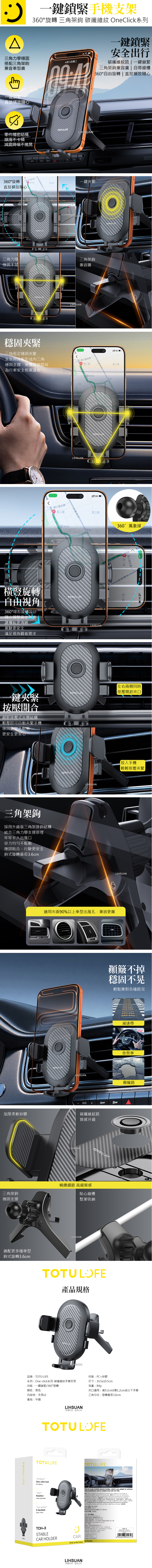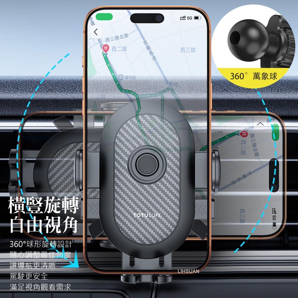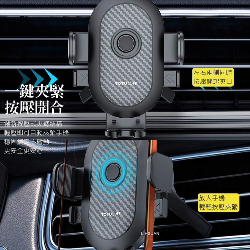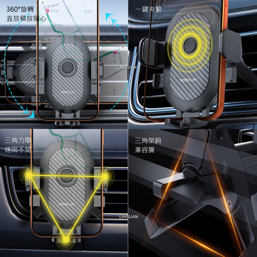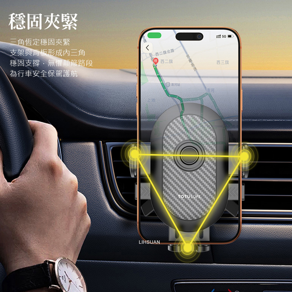 TOTU台灣官方 LiFE 一鍵夾緊 碳纖維紋出風口導航手機支架 三角架鉤 OneClick系列