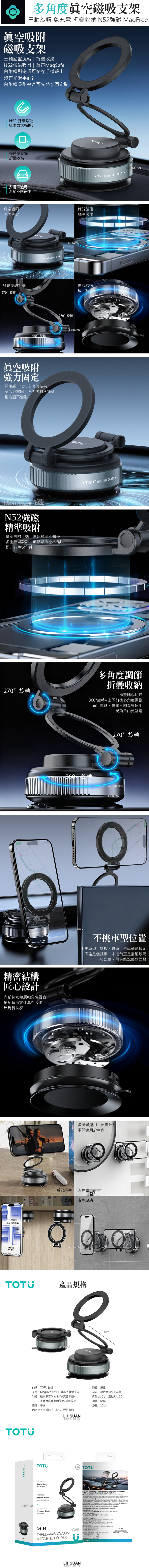 TOTU台灣 多角度折疊旋轉真空吸盤磁吸手機支架 MagFree系列 免充電/車用導航/MagSafe適用
