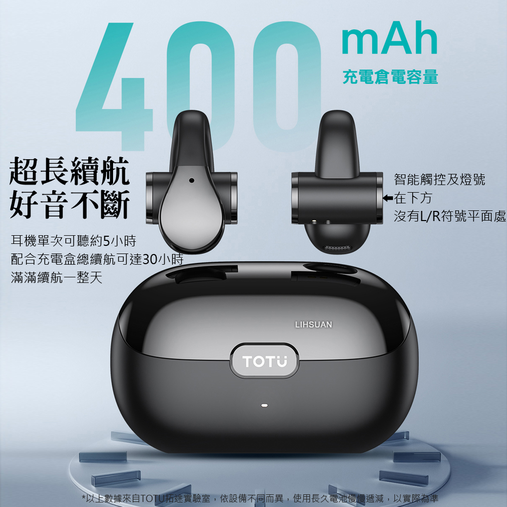 TOTU台灣官方 OWS開放式骨傳導真無線藍牙耳機 耳夾式運動藍芽耳機 SoundX系列 黑灰