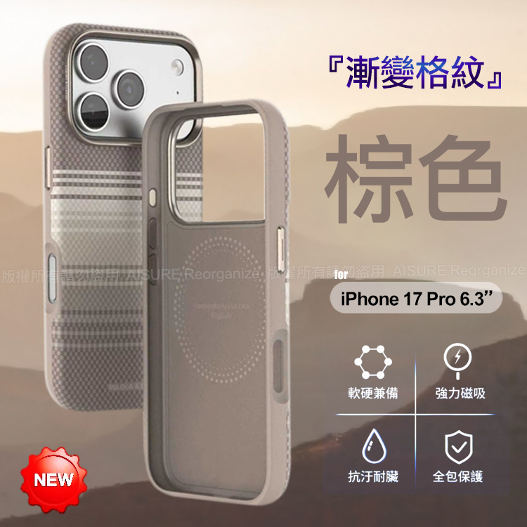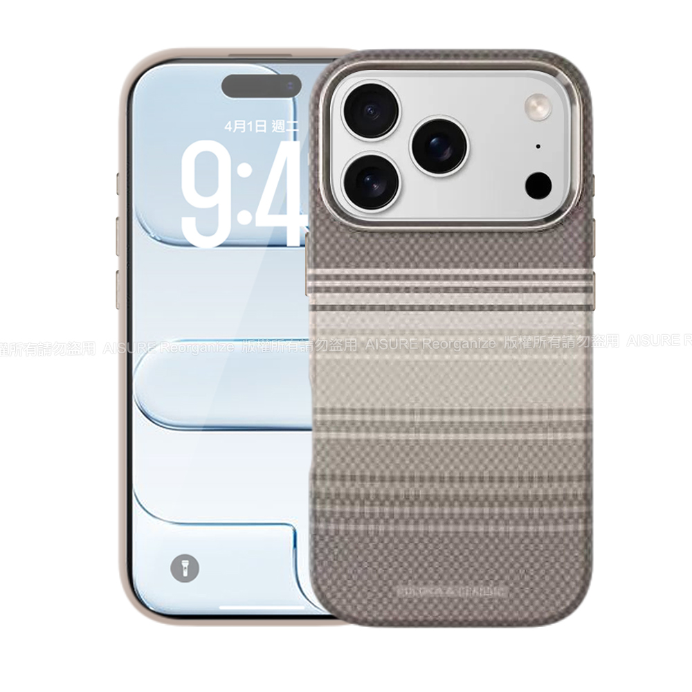 Puloka iPhone 17 Pro 6.3 凱夫拉藝術格紋磁吸鋁合金鏡頭框保護殼-棕
