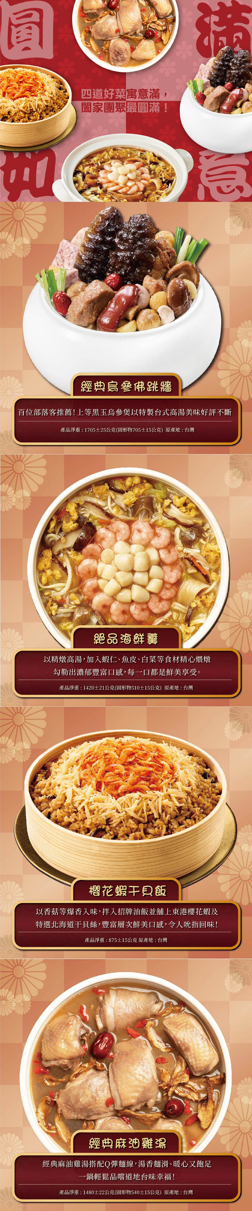 【老協珍】圓滿如意E四件組(烏參佛跳牆+經典麻油雞湯+絕品海鮮羹+櫻花蝦干貝飯)_2026春節年菜