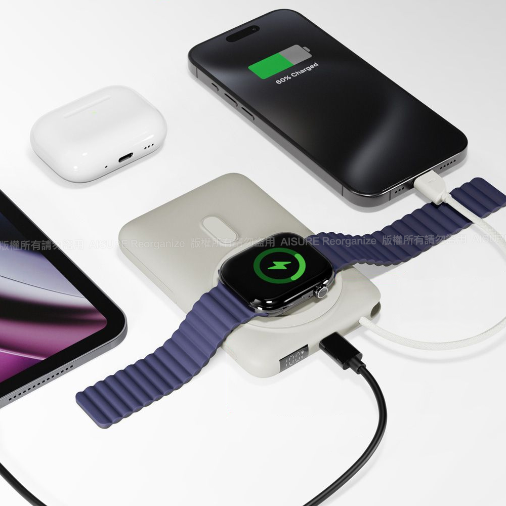 支援3合1磁吸無線充(手機、手錶、藍牙耳機),多設備同時充電