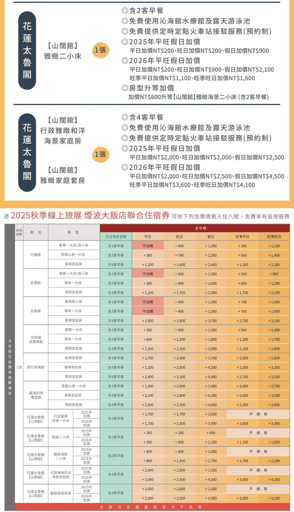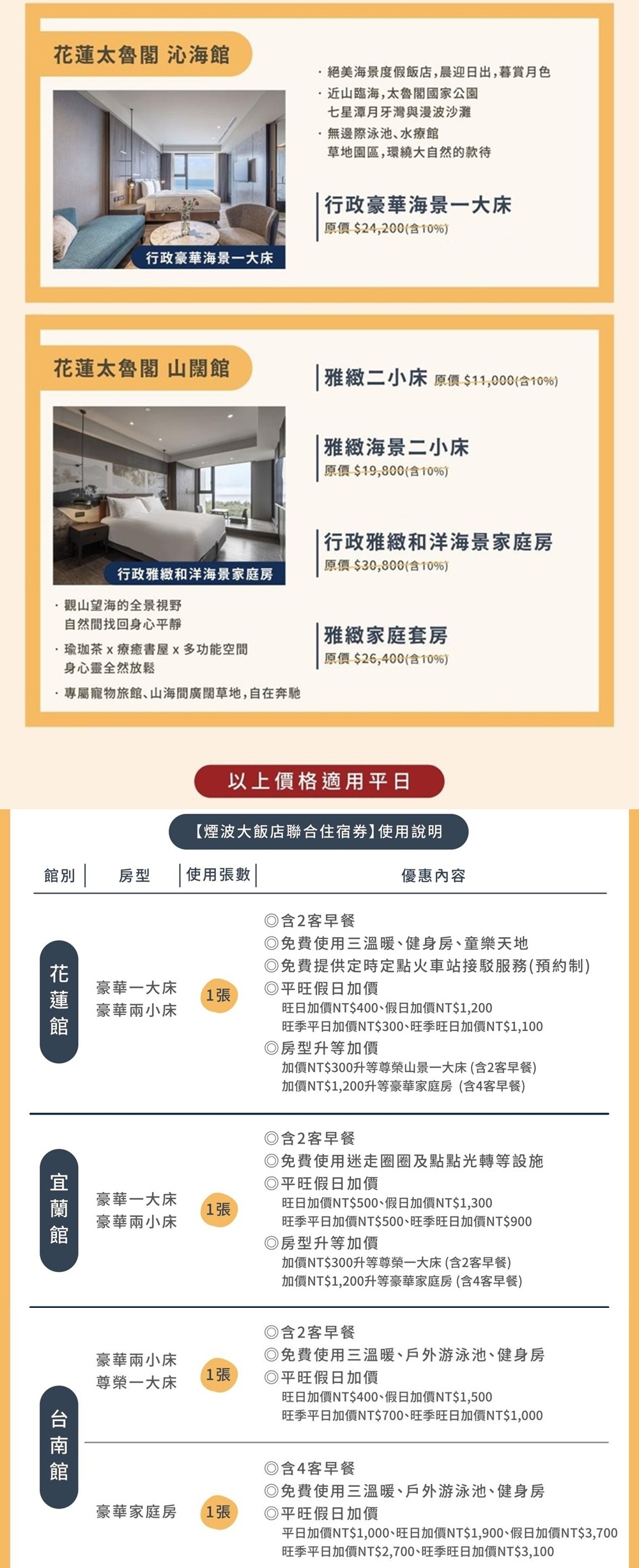 煙波大飯店聯合住宿券[新竹、台南、宜蘭、花蓮]