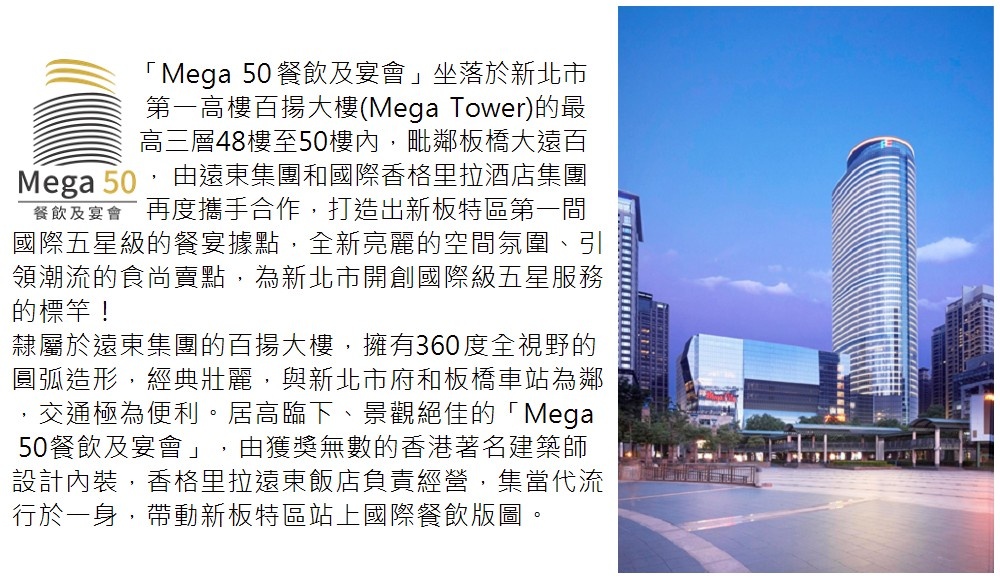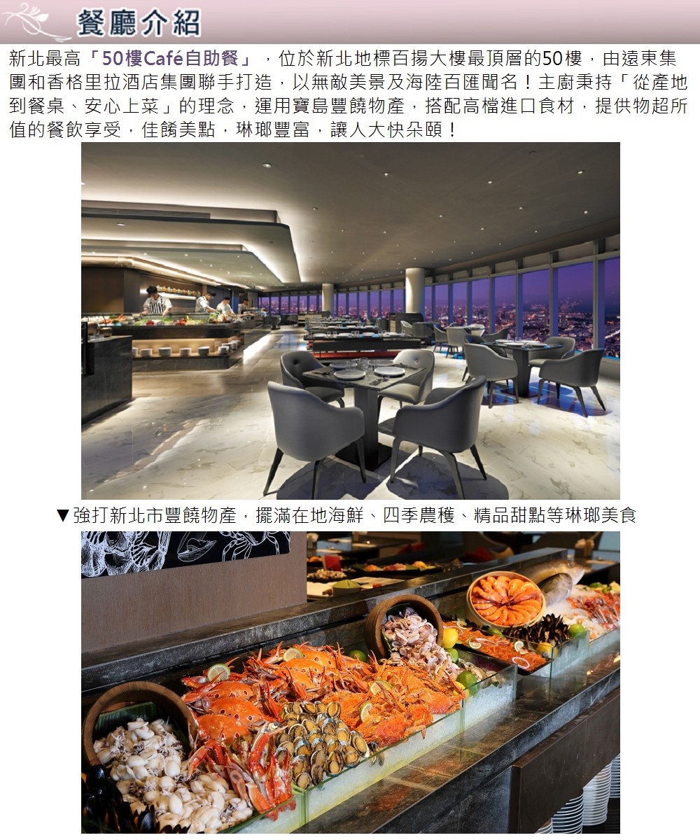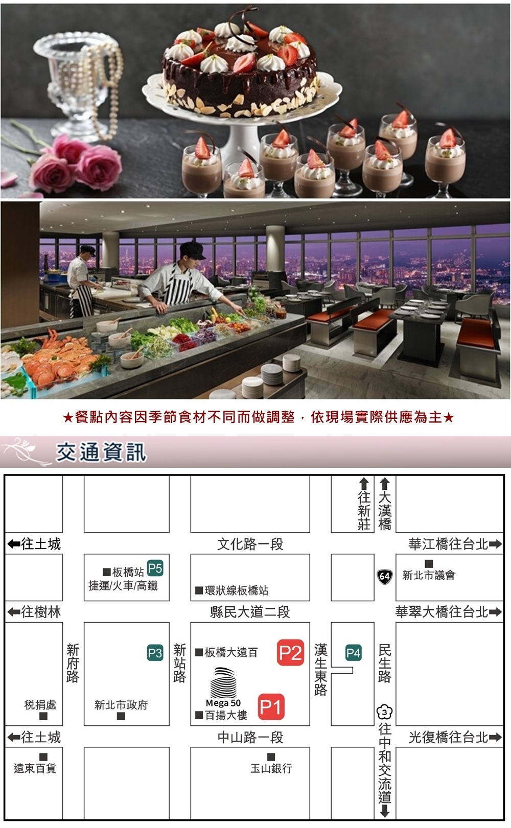 【板橋Mega50】50樓Café平日自助午或晚餐吃到飽(假日加價$150)