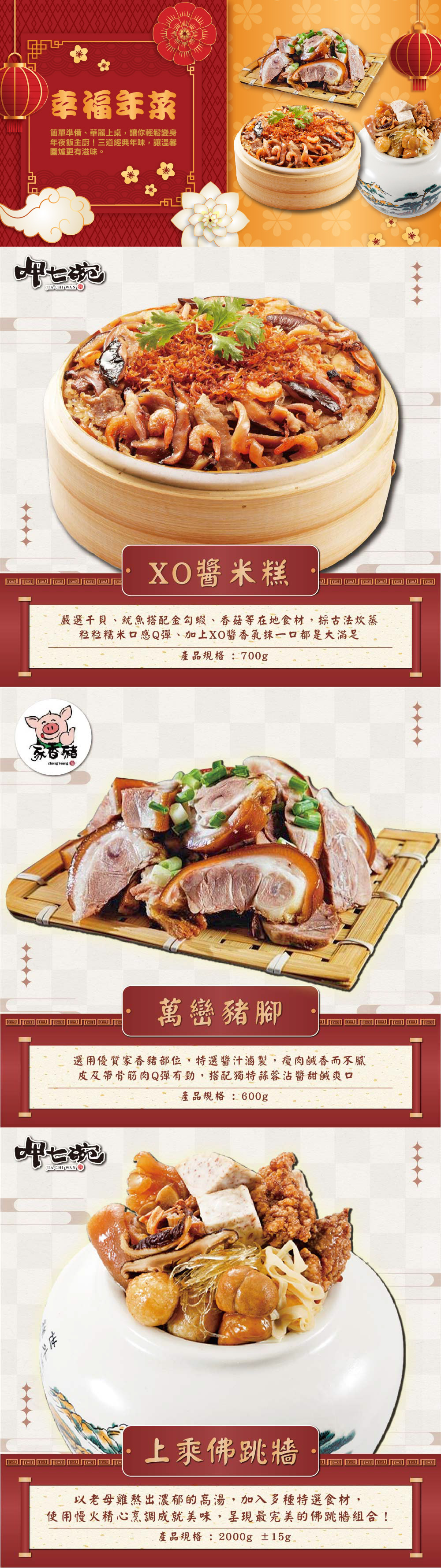 預購【呷七碗x吉晟嚴選】幸福年菜三道組B(上乘佛跳牆+XO醬米糕+萬巒豬腳)_2026年菜_2026/2/5~2/11出貨