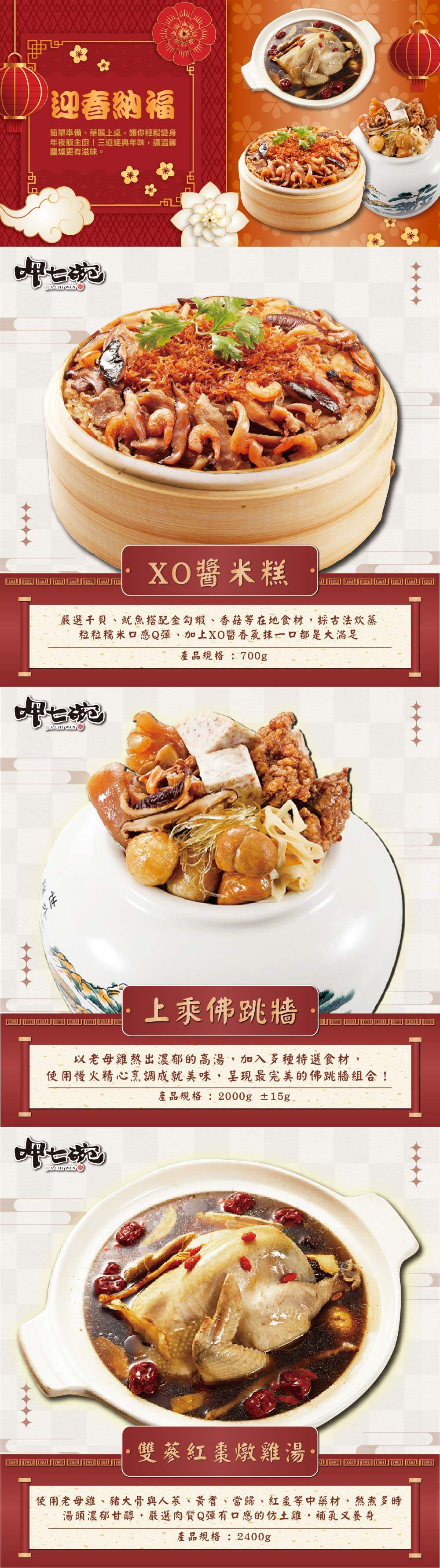 【呷七碗】迎春納福三道組A(佛跳牆+XO醬米糕+雙蔘紅棗燉雞湯)_2026年菜