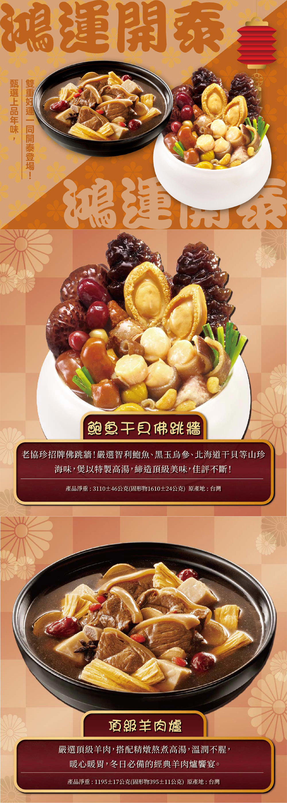 預購【老協珍】鴻運開泰年菜D(鮑魚干貝佛跳牆+頂級羊肉爐)_2026春節年菜_2026/2/5~2/11出貨