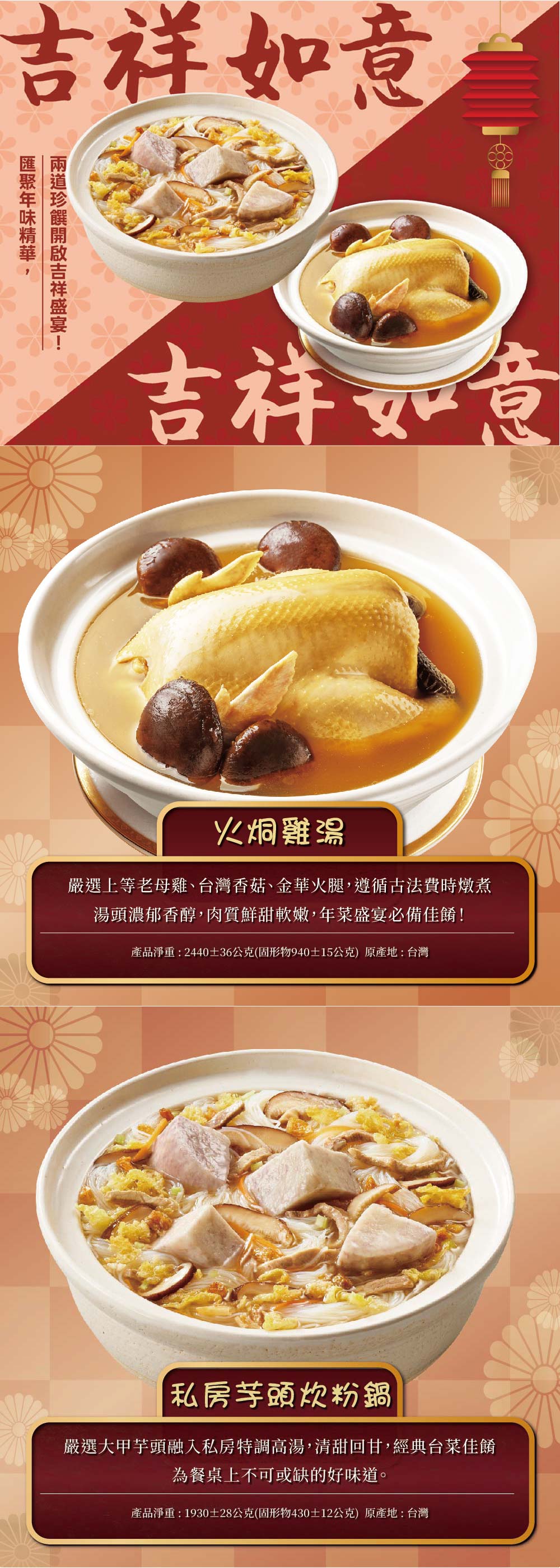 預購【老協珍】吉祥如意F(火烔雞湯+私房芋頭炊粉鍋)_2026春節年菜_2026/2/5~2/11出貨