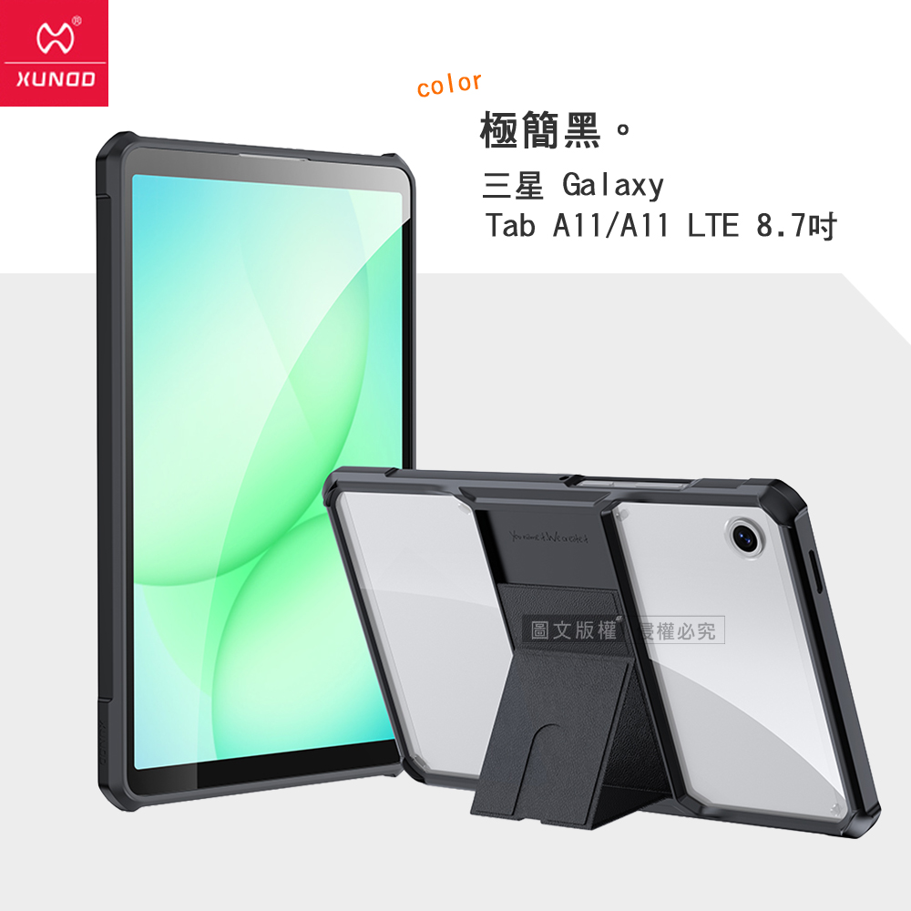 XUNDD訊迪 軍事氣囊 三星 Galaxy Tab A11 / A11 LTE 8.7吋 隱形支架殼 平板防摔保護套(極簡黑)