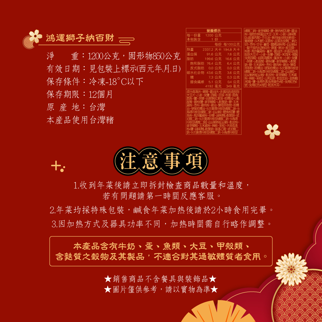【冊子年菜】鴻運獅子納百財