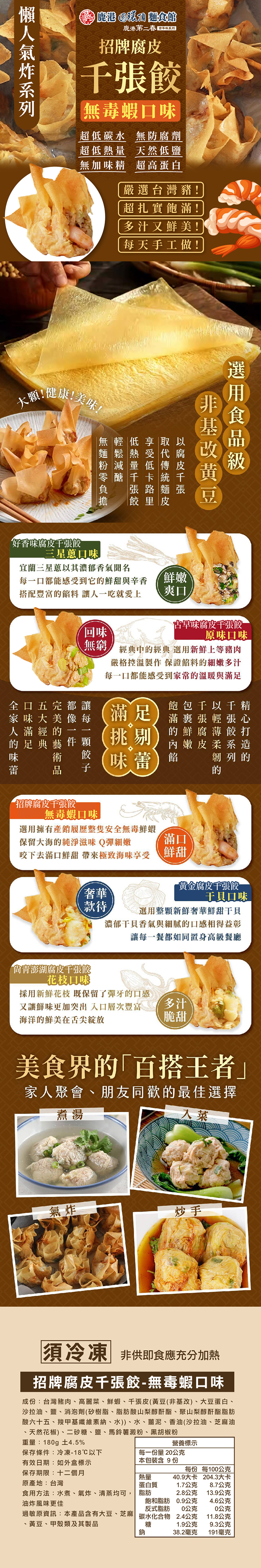 【鹿港圓環頂】古早味腐皮千張餃-無毒蝦X12盒(180g/盒)