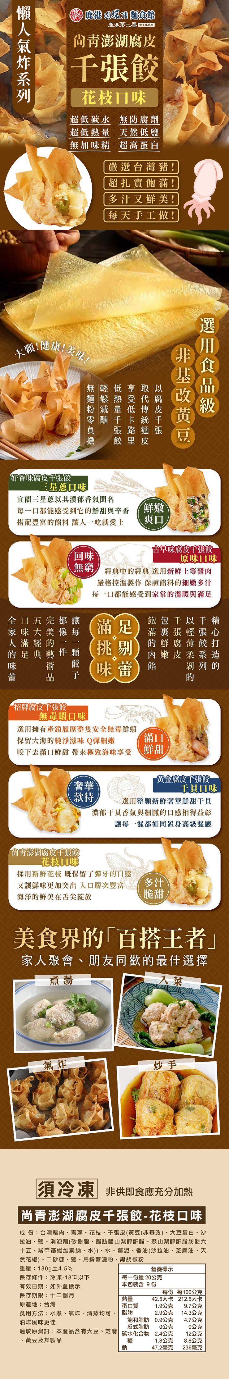 【鹿港圓環頂】尚青澎湖腐皮千張餃-花枝X6盒(180g/盒)