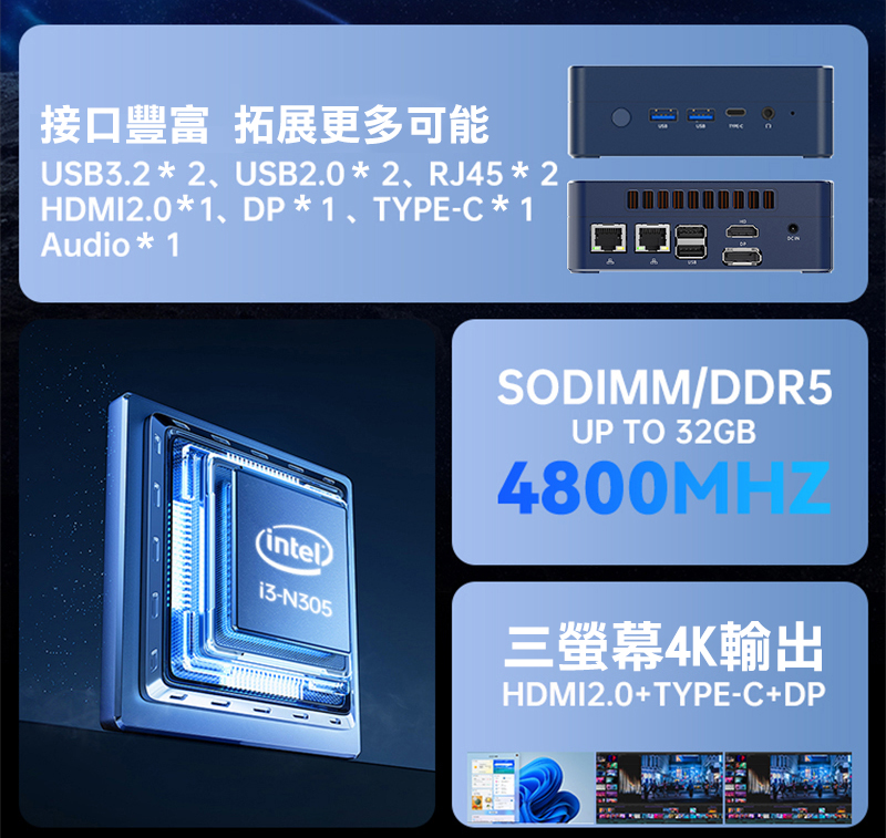 .Intel Alder Lake i3-N305 8核8執行緒 3.8GHz, 6MB 快取記憶體
