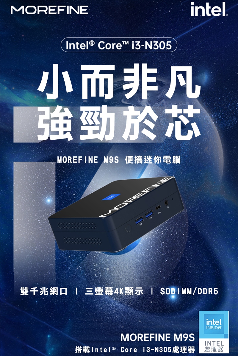 MOREFINE M9S 迷你電腦(Intel Core i3-N305 3.8GHz) - 16G/512G/WIN 11