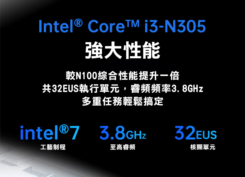 .Intel Alder Lake i3-N305 8核8執行緒 3.8GHz, 6MB 快取記憶體