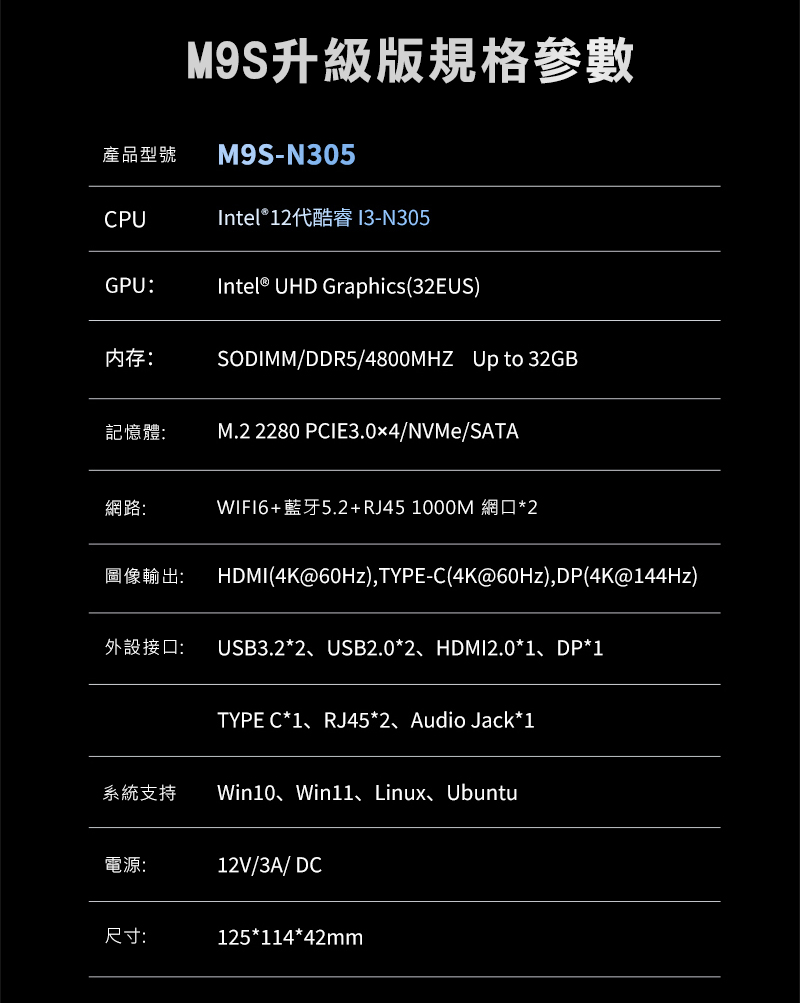 MOREFINE M9S 迷你電腦(Intel Core i3-N305 3.8GHz) - 8G/1TB/WIN 11