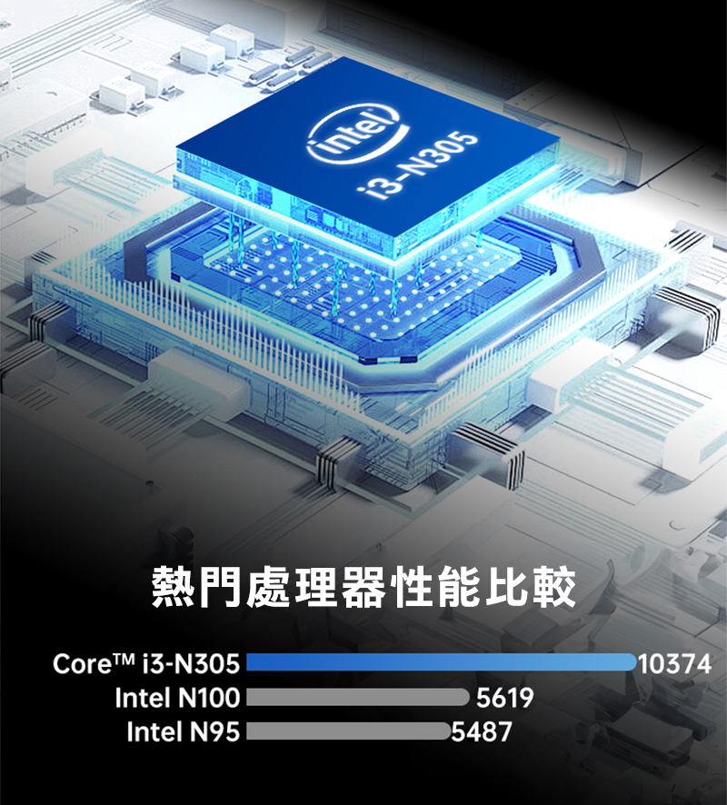 .Intel Alder Lake i3-N305 8核8執行緒 3.8GHz, 6MB 快取記憶體