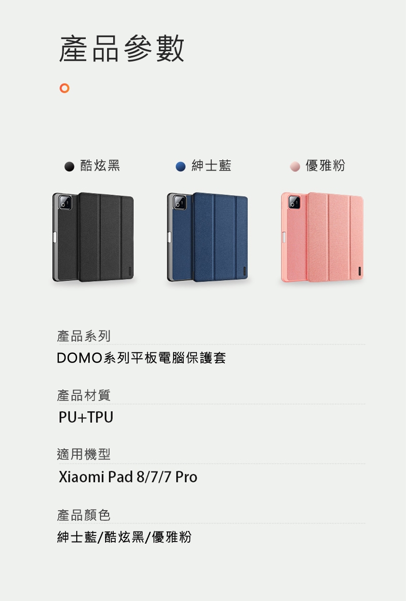 DUX DUCIS Xiaomi 小米 Pad 7 / Pad 7 Pro / Pad 8 / Pad 8 Pro DOMO 筆槽防摔皮套(粉色)