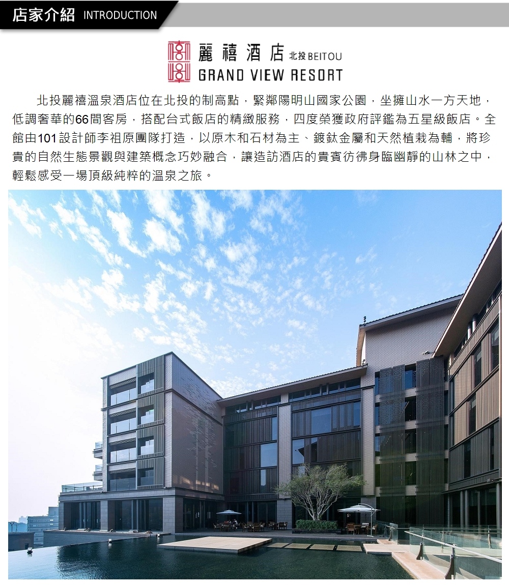 【北投麗禧溫泉酒店】1人露天風呂泡湯券