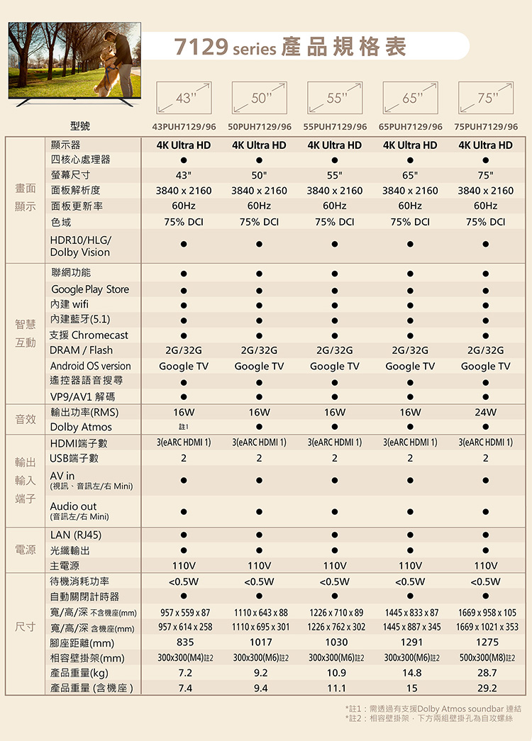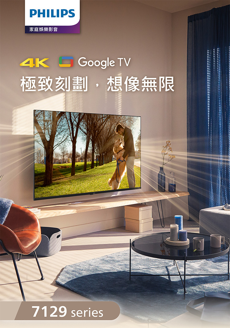 (送固定式壁掛安裝)飛利浦 50吋 4K GoogleTV液晶顯示器 50PUH7129