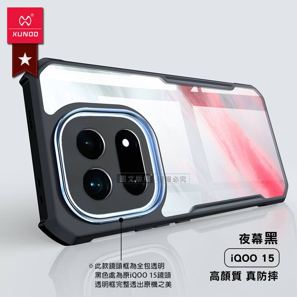 XUNDD訊迪 軍事防摔 iQOO 15 鏡頭全包覆 清透保護殼 手機殼(夜幕黑)
