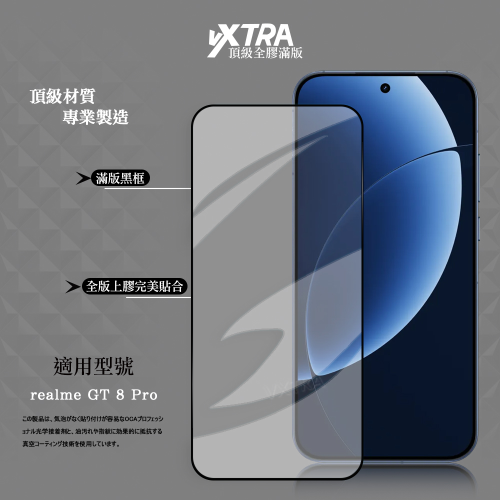 VXTRA 全膠貼合 realme GT 8 Pro 滿版疏水疏油9H鋼化頂級玻璃膜(黑)