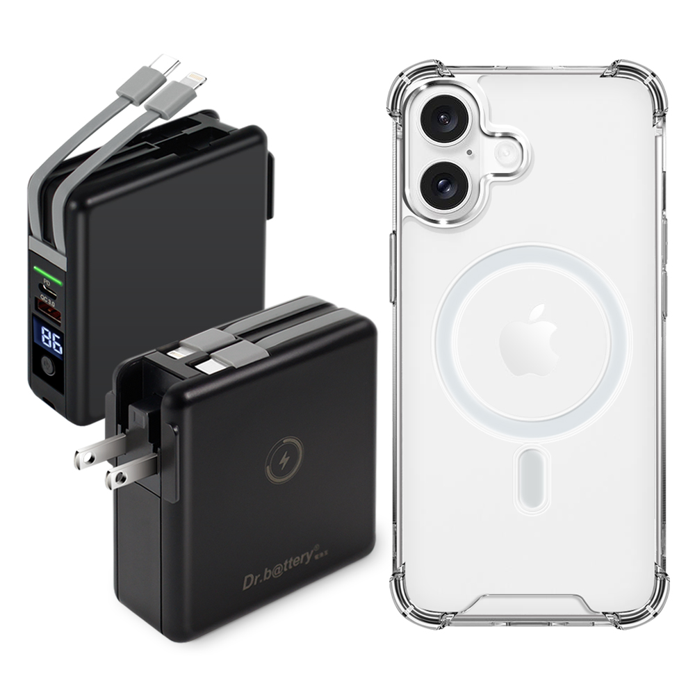 Dr.b@ttery電池王 多功能MagSafe無線充電+自帶線行動電源-黑+贈 iPhone16 Plus 磁吸殼