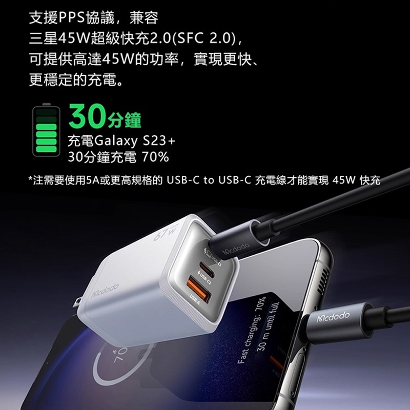 三口輸出USB-C1+(USB-C2+USB-A):70W+20W
