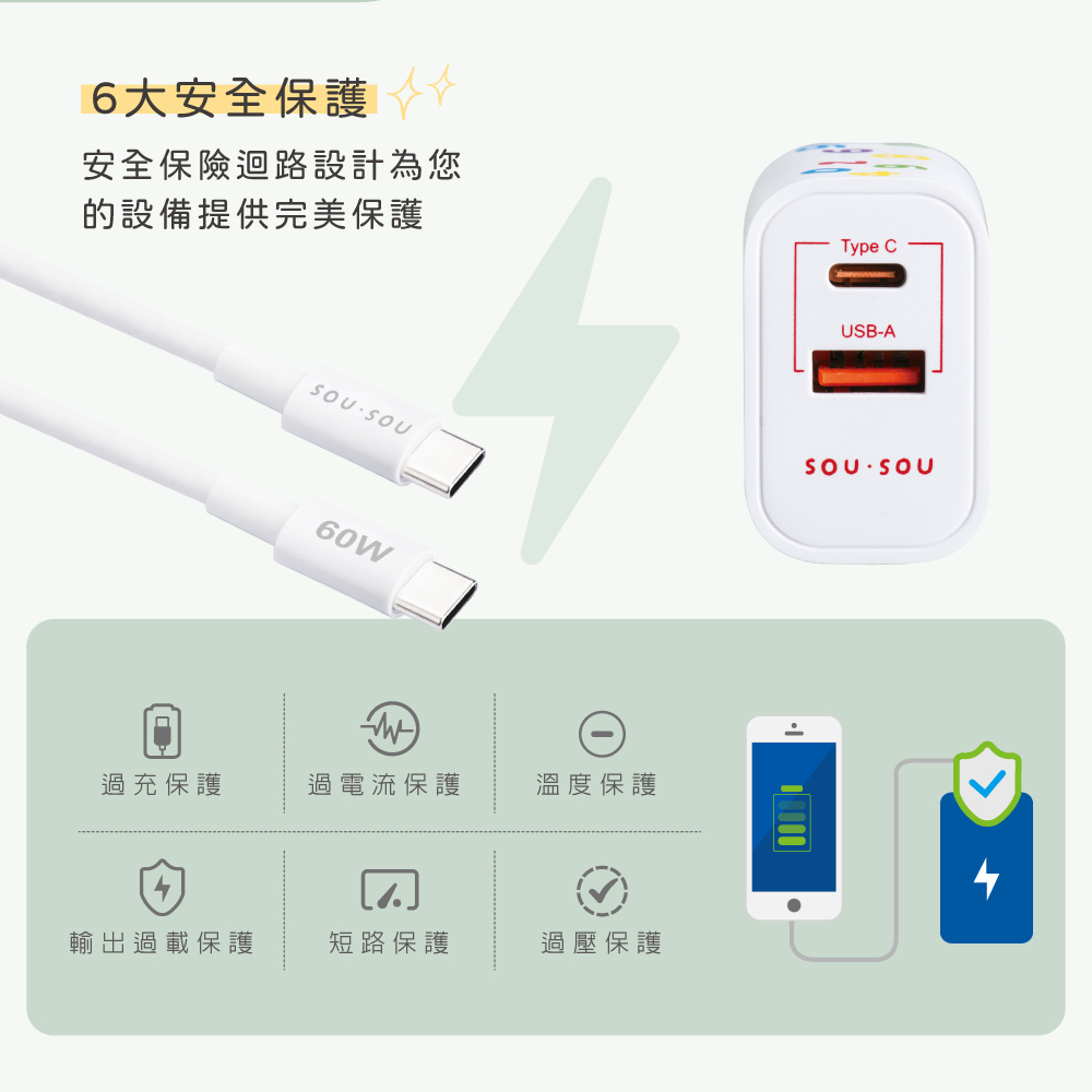 SOU.SOU十數昆 25W氮化鎵GaN 1A1C + 60W C to C 快充傳輸線組