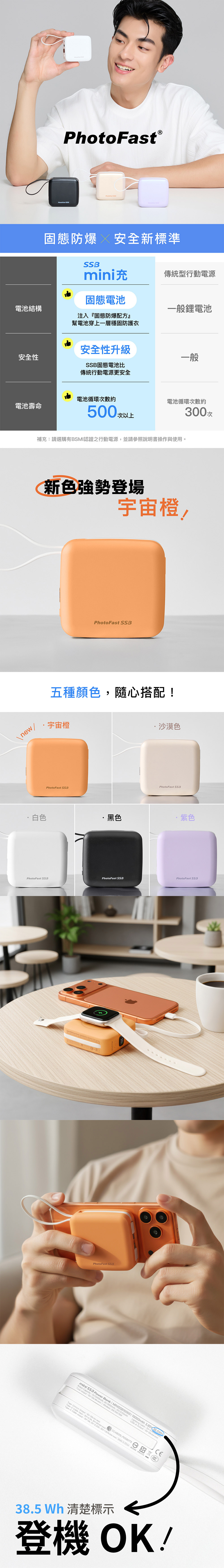 【PhotoFast】SSB mini防爆充 固態行動電源 迷你磁吸萬用充10000mAh (有標示Wh)_宇宙橙