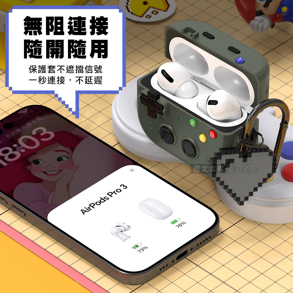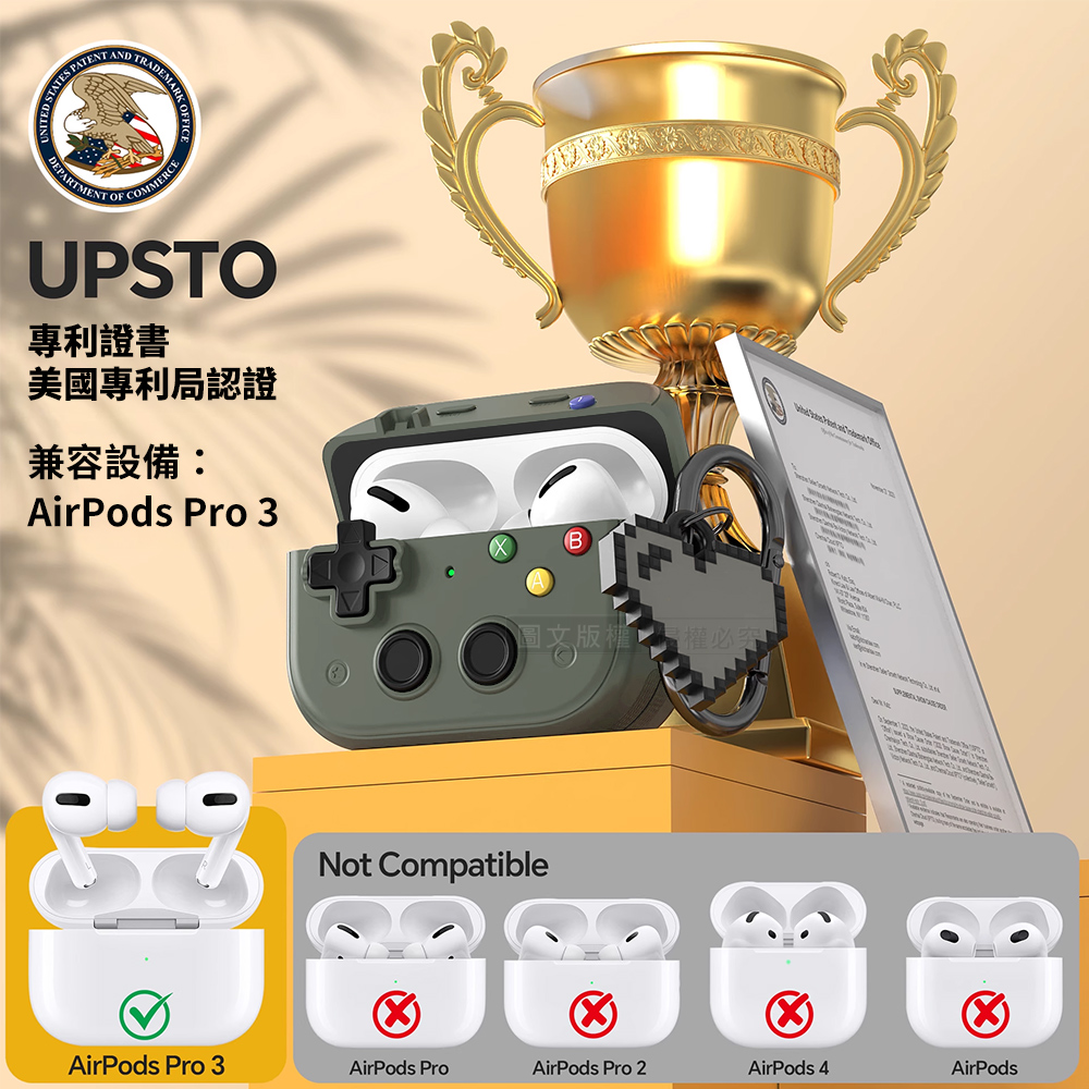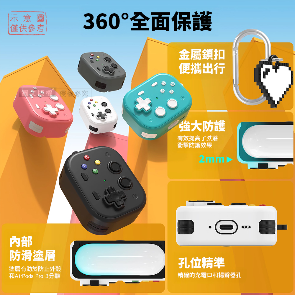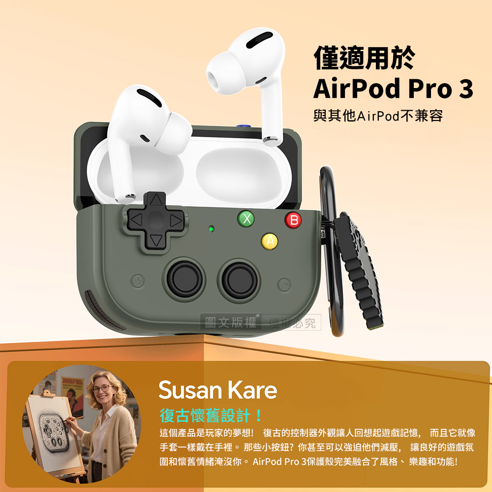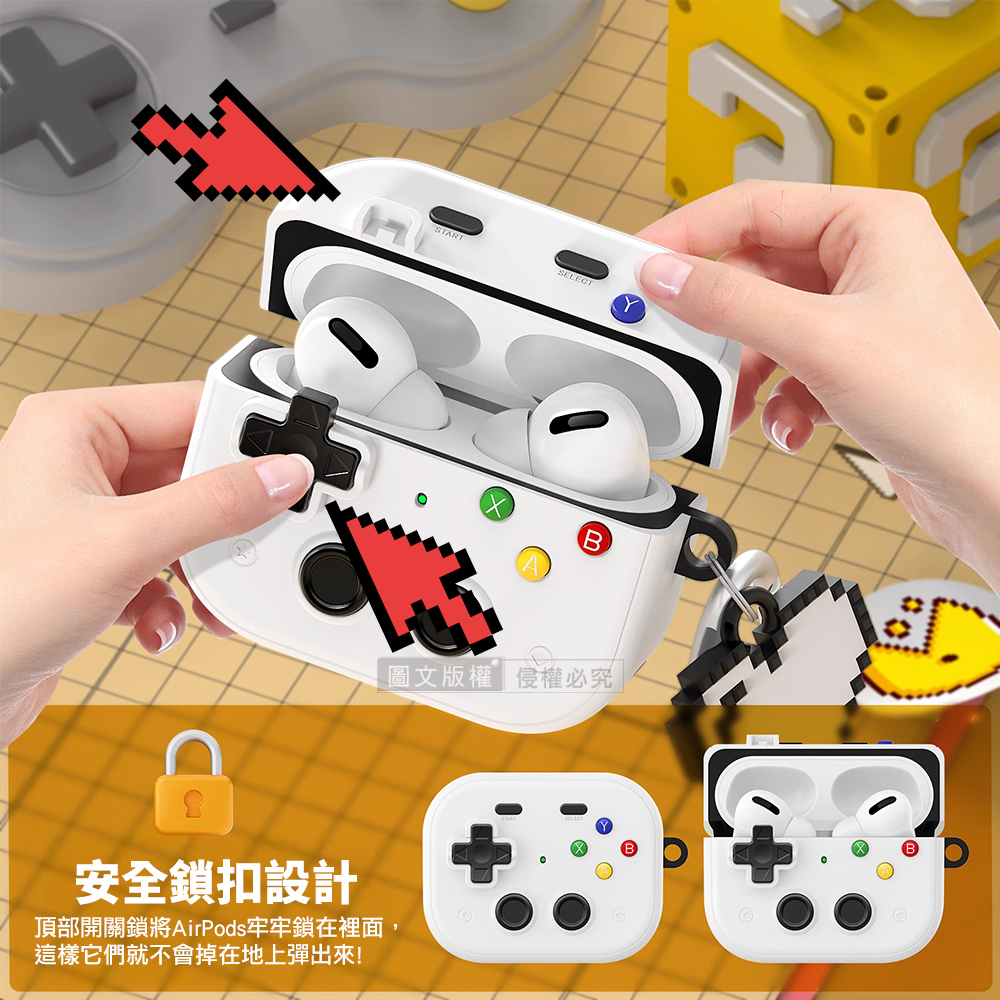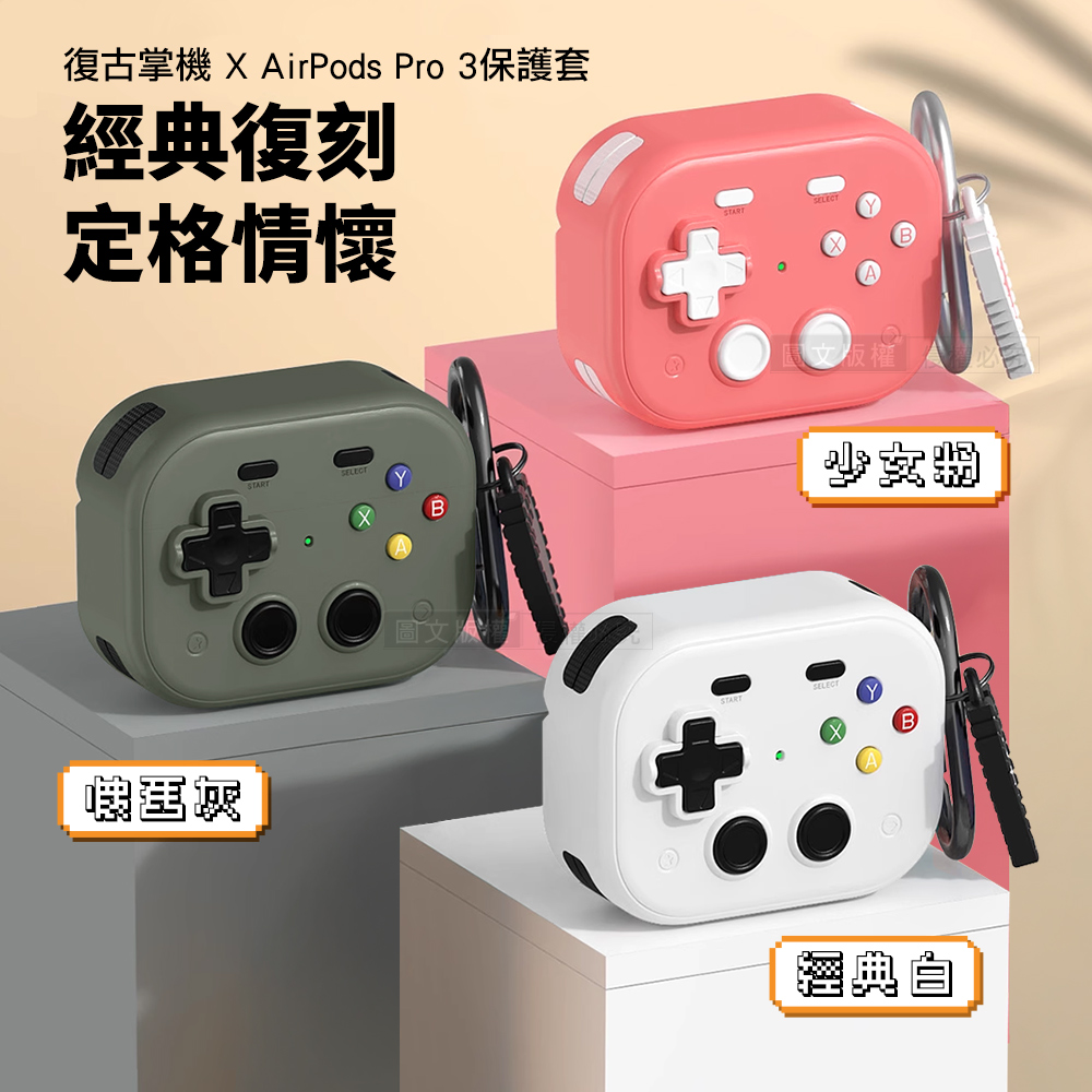 復古掌機造型 AirPods Pro 3 硬殼防摔耳機套 3D紓壓按鍵 防開鎖扣 附心形掛勾(經典白)