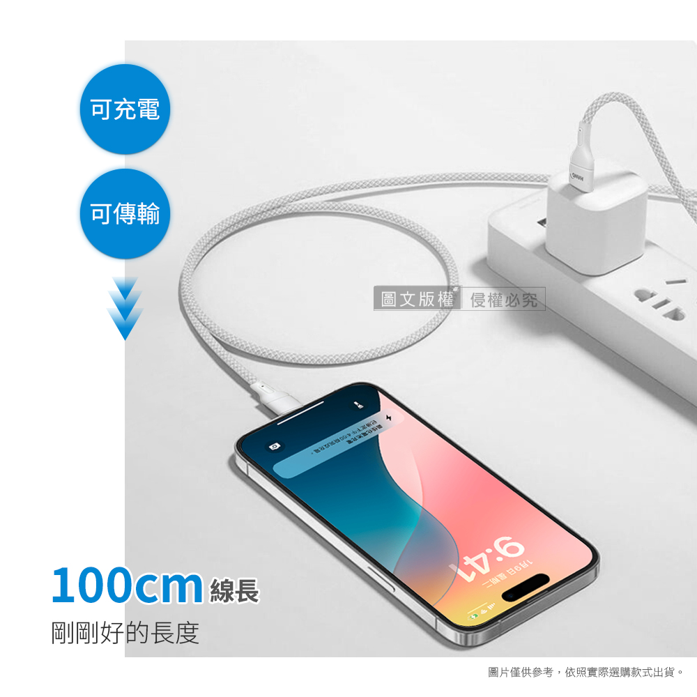 HANG 3.4A接口加固快充傳輸線 USB to Lightning 耐拉編織充電線(100CM)兩入組