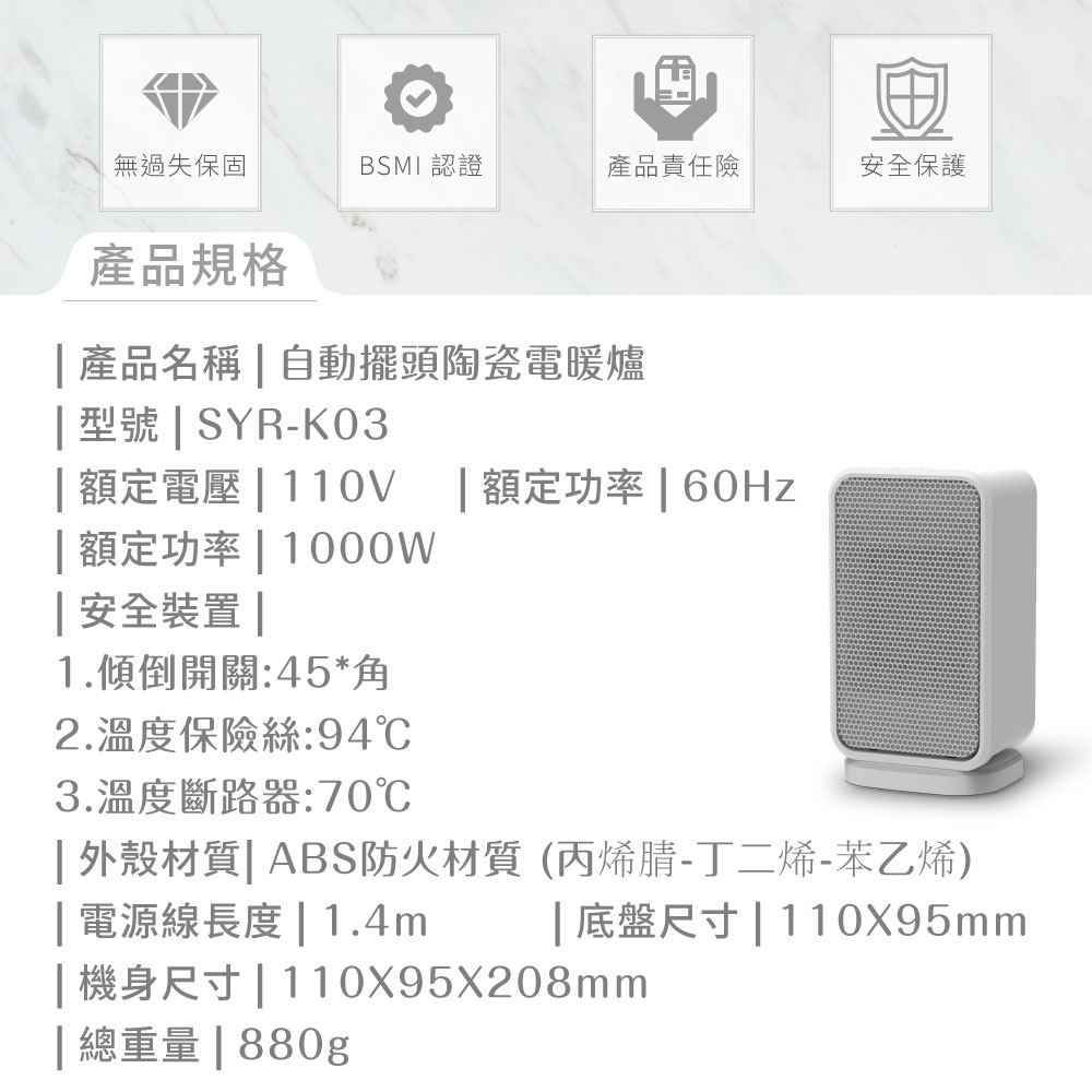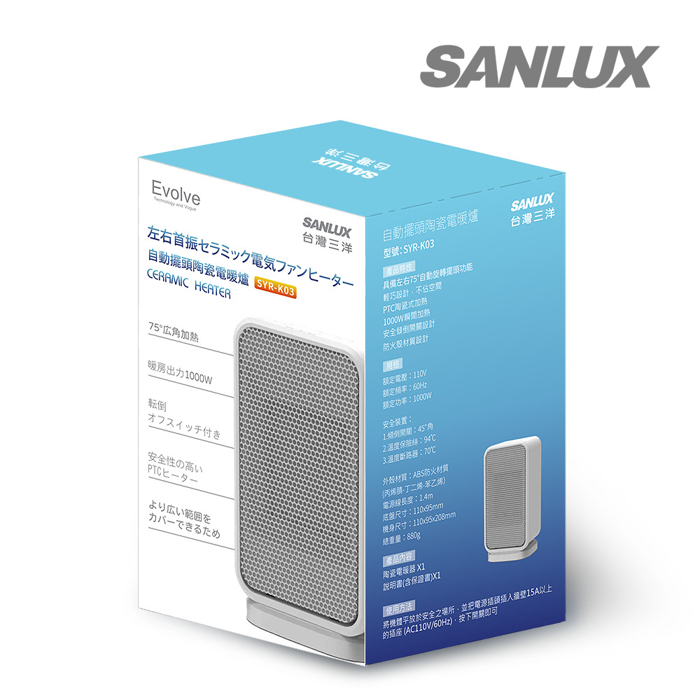 SANLUX 台灣三洋 1000W高效能擺頭陶瓷電暖爐 SYR-K03
