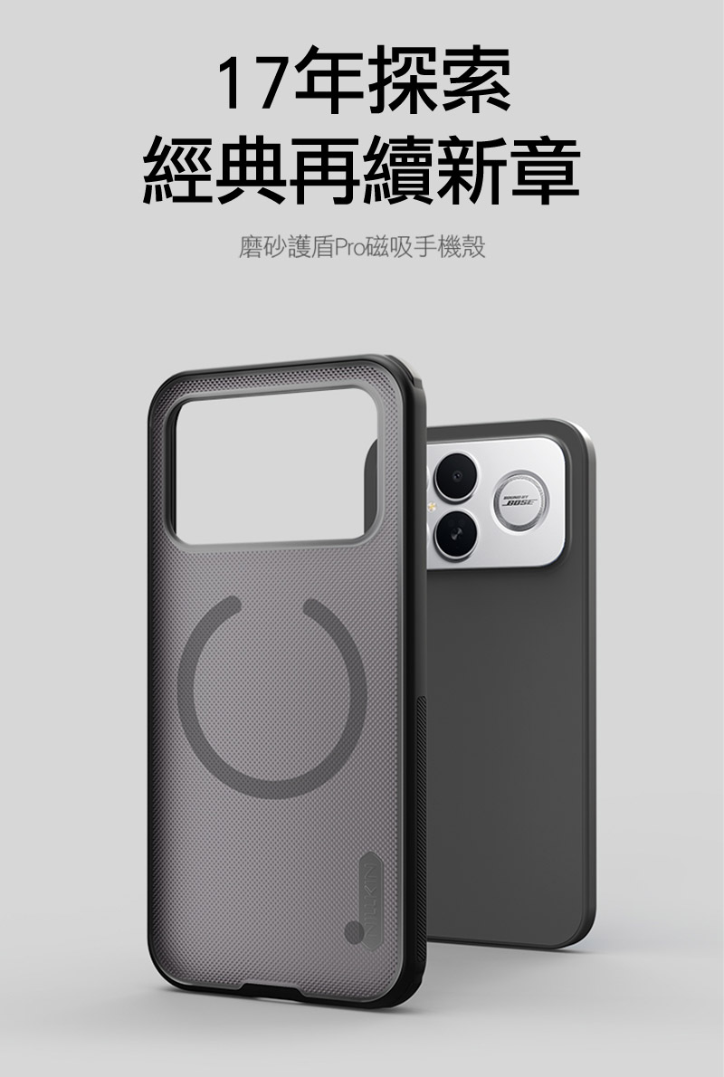NILLKIN POCO F8 Ultra 5G 磨砂護盾 Pro 磁吸保護殼(透黑)