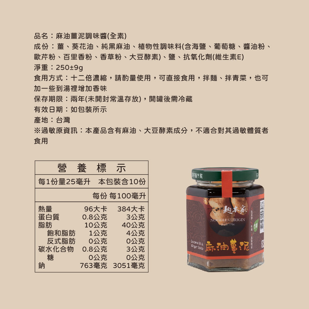 嚴選新鮮老薑細磨成泥,搭配純正黑麻油小火慢煉,完整釋放薑香與麻油溫潤層次。無多餘調味,入口暖而不燥、香而不膩,是拌麵、拌菜、坐月子與日常料理的百搭靈魂醬。一開瓶,熟悉的家常暖香立刻上桌。