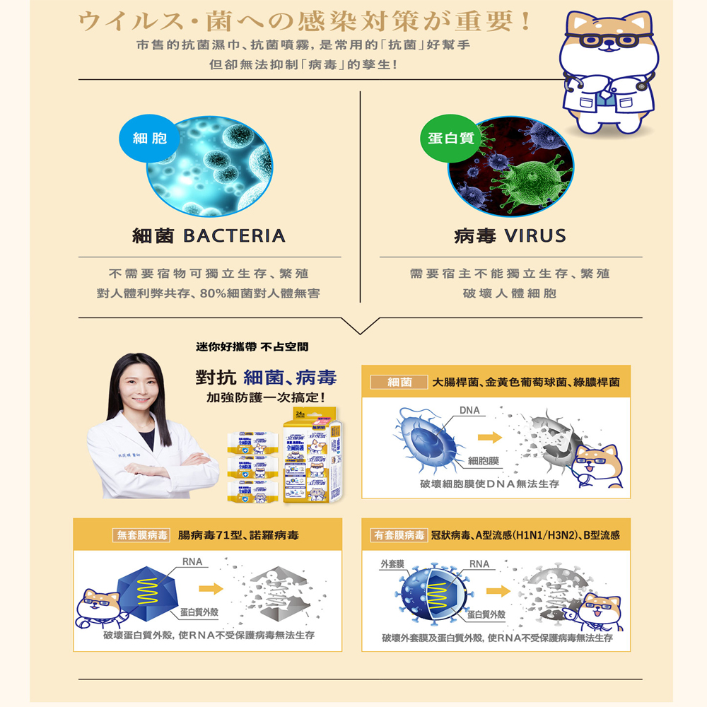 頂尖醫學中心實證,可有效抑制 冠狀病毒、腸病毒71型、諾羅病毒、A型流感(H1N1、H3N2)、B型流感