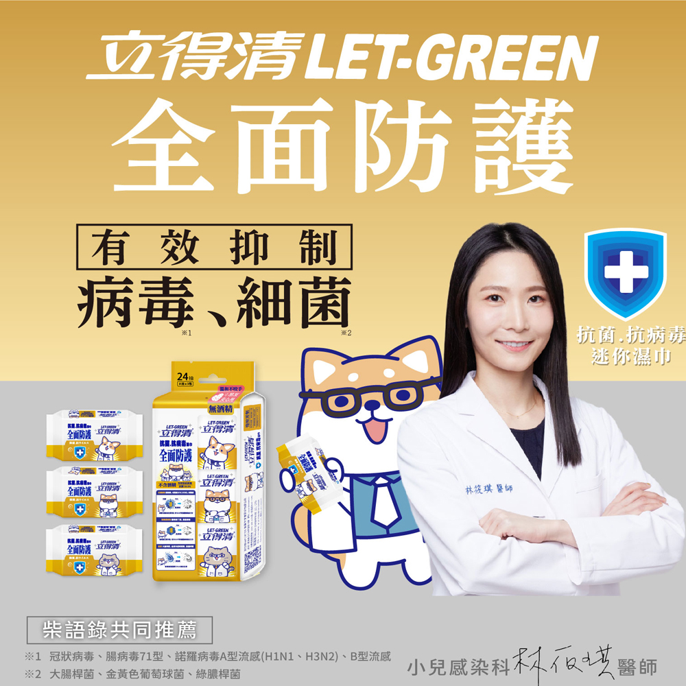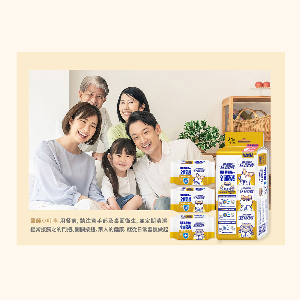 立得清 抗菌.抗病毒濕巾-全面防護(8抽x3包)x24組