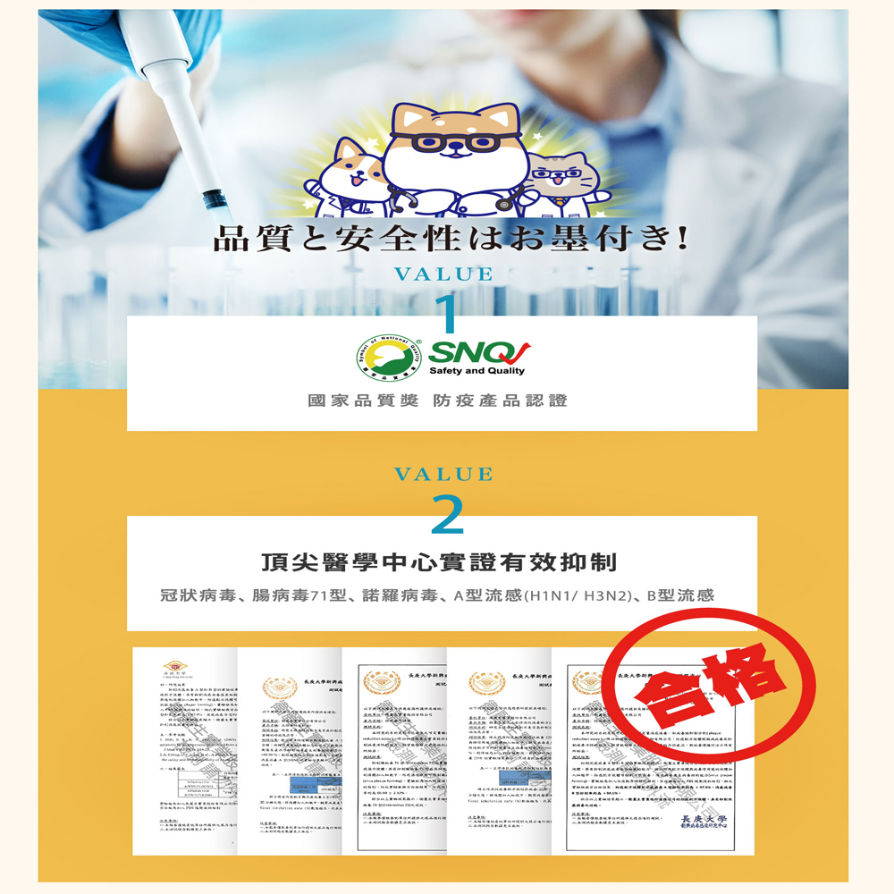 ■ 頂尖醫學中心實證,可有效抑制 冠狀病毒、腸病毒71型、諾羅病毒、A型流感(H1N1、H3N2)、B型流感